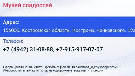 Музей сладостей по адресу 156000, Костромская область, Кострома, Чайковского, 19а в дальнейшем Организация, размещена в следующих категориях: