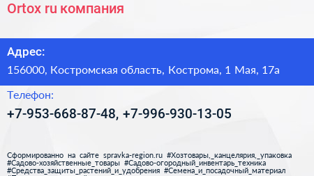 Ortox.ru, компания по адресу 156000, Костромская область, Кострома, 1 Мая, 17а в дальнейшем Организация, размещена в следующих категориях: