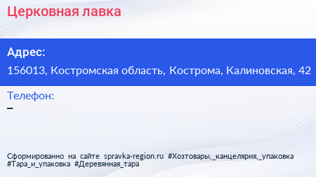 Церковная лавка по адресу 156013, Костромская область, Кострома, Калиновская, 42 в дальнейшем Организация, размещена в следующих категориях: