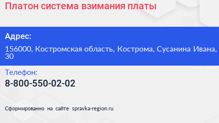 Платон, система взимания платы по адресу 156000, Костромская область, Кострома, Сусанина Ивана, 30 в дальнейшем Организация, размещена в следующих категориях: