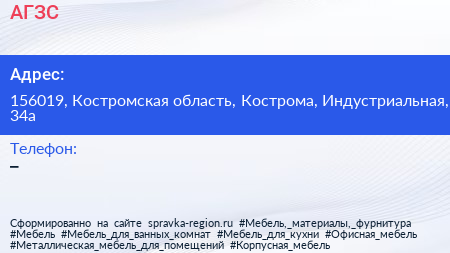АГЗС по адресу 156019, Костромская область, Кострома, Индустриальная, 34а в дальнейшем Организация, размещена в следующих категориях: