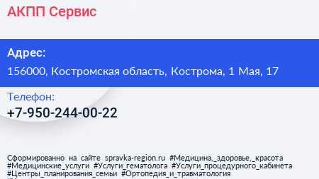 АКПП Сервис по адресу 156000, Костромская область, Кострома, 1 Мая, 17 в дальнейшем Организация, размещена в следующих категориях:
