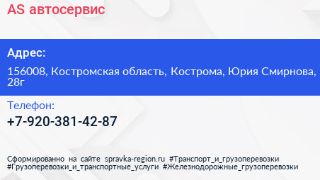 AS, автосервис по адресу 156008, Костромская область, Кострома, Юрия Смирнова, 28г в дальнейшем Организация, размещена в следующих категориях: