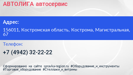 АВТОЛИГА, автосервис по адресу 156011, Костромская область, Кострома, Магистральная, 67 в дальнейшем Организация, размещена в следующих категориях: