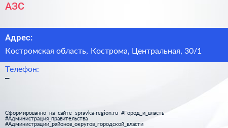 АЗС по адресу Костромская область, Кострома, Центральная, 30/1 в дальнейшем Организация, размещена в следующих категориях:
