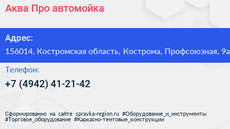 Аква Про, автомойка по адресу 156014, Костромская область, Кострома, Профсоюзная, 9а в дальнейшем Организация, размещена в следующих категориях: