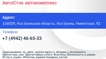 АвтоСтэк, автокомплекс по адресу 156029, Костромская область, Кострома, Никитская, 92 в дальнейшем Организация, размещена в следующих категориях: