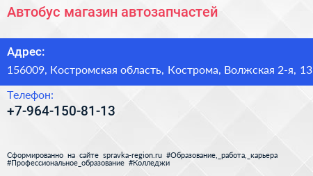 Автобус, магазин автозапчастей по адресу 156009, Костромская область, Кострома, Волжская 2-я, 13 в дальнейшем Организация, размещена в следующих категориях: