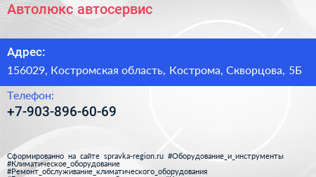 Автолюкс, автосервис по адресу 156029, Костромская область, Кострома, Скворцова, 5Б в дальнейшем Организация, размещена в следующих категориях:
