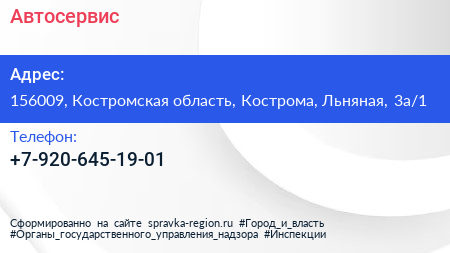 Автосервис по адресу 156009, Костромская область, Кострома, Льняная, 3а/1 в дальнейшем Организация, размещена в следующих категориях:
