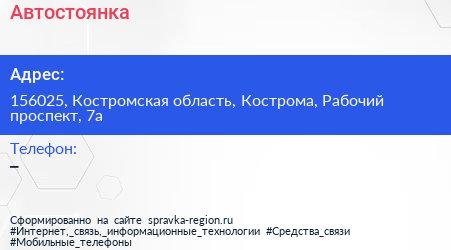 Автостоянка по адресу 156025, Костромская область, Кострома, Рабочий проспект, 7а в дальнейшем Организация, размещена в следующих категориях: