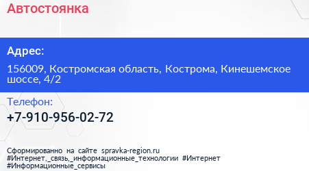 Автостоянка по адресу 156009, Костромская область, Кострома, Кинешемское шоссе, 4/2 в дальнейшем Организация, размещена в следующих категориях: