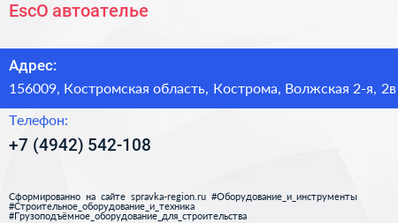 EscO, автоателье по адресу 156009, Костромская область, Кострома, Волжская 2-я, 2в в дальнейшем Организация, размещена в следующих категориях: