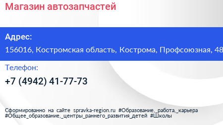 Магазин автозапчастей по адресу 156016, Костромская область, Кострома, Профсоюзная, 48 в дальнейшем Организация, размещена в следующих категориях:
