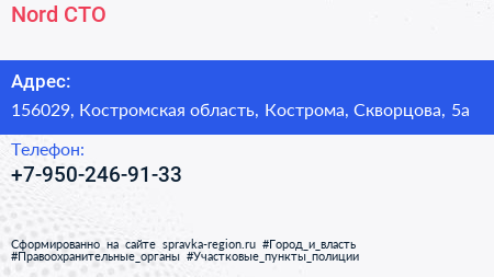 Nord, СТО по адресу 156029, Костромская область, Кострома, Скворцова, 5а в дальнейшем Организация, размещена в следующих категориях: