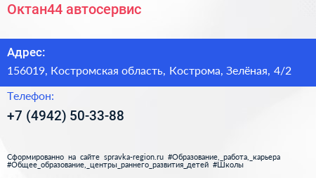 Октан44, автосервис по адресу 156019, Костромская область, Кострома, Зелёная, 4/2 в дальнейшем Организация, размещена в следующих категориях: