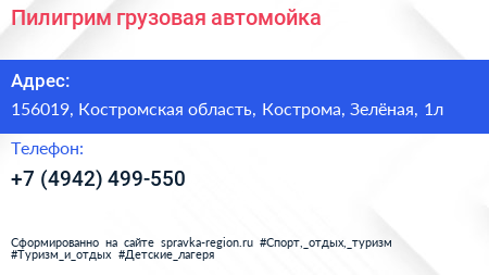 Пилигрим, грузовая автомойка по адресу 156019, Костромская область, Кострома, Зелёная, 1л в дальнейшем Организация, размещена в следующих категориях: