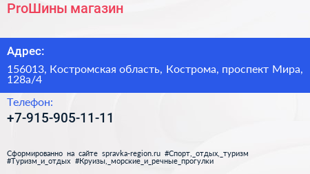 ProШины, магазин по адресу 156013, Костромская область, Кострома, проспект Мира, 128а/4 в дальнейшем Организация, размещена в следующих категориях: