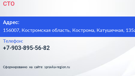 СТО по адресу 156007, Костромская область, Кострома, Катушечная, 135а в дальнейшем Организация, размещена в следующих категориях: