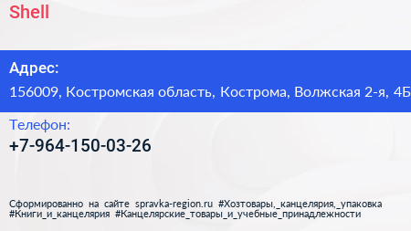 Shell по адресу 156009, Костромская область, Кострома, Волжская 2-я, 4Б в дальнейшем Организация, размещена в следующих категориях: