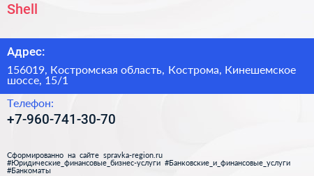 Shell по адресу 156019, Костромская область, Кострома, Кинешемское шоссе, 15/1 в дальнейшем Организация, размещена в следующих категориях: