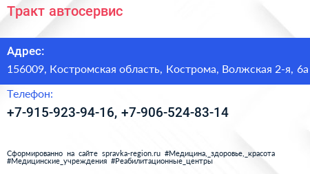Тракт, автосервис по адресу 156009, Костромская область, Кострома, Волжская 2-я, 6а в дальнейшем Организация, размещена в следующих категориях: