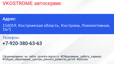 VKOSTROME, автосервис по адресу 156019, Костромская область, Кострома, Локомотивная, 16/1 в дальнейшем Организация, размещена в следующих категориях: