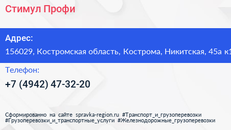 Стимул Профи по адресу 156029, Костромская область, Кострома, Никитская, 45а к1 в дальнейшем Организация, размещена в следующих категориях: