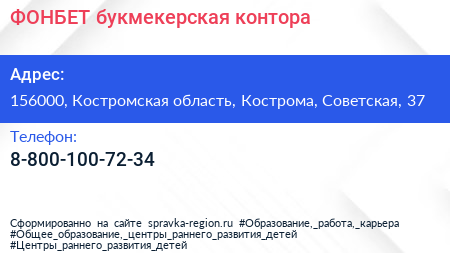 ФОНБЕТ, букмекерская контора по адресу 156000, Костромская область, Кострома, Советская, 37 в дальнейшем Организация, размещена в следующих категориях:
