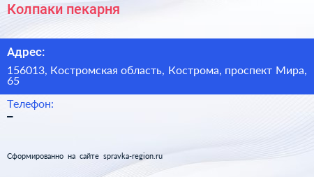 Колпаки, пекарня по адресу 156013, Костромская область, Кострома, проспект Мира, 65 в дальнейшем Организация, размещена в следующих категориях:
