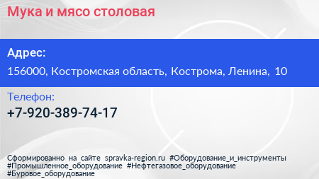 Мука и мясо, столовая по адресу 156000, Костромская область, Кострома, Ленина, 10 в дальнейшем Организация, размещена в следующих категориях: