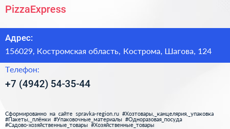 PizzaExpress по адресу 156029, Костромская область, Кострома, Шагова, 124 в дальнейшем Организация, размещена в следующих категориях:
