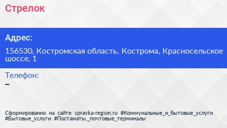 Стрелок по адресу 156530, Костромская область, Кострома, Красносельское шоссе, 1 в дальнейшем Организация, размещена в следующих категориях: