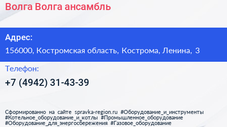 Волга-Волга, ансамбль по адресу 156000, Костромская область, Кострома, Ленина, 3 в дальнейшем Организация, размещена в следующих категориях: