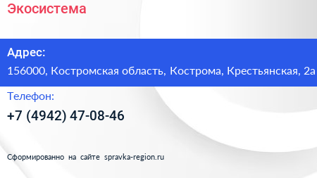 Экосистема по адресу 156000, Костромская область, Кострома, Крестьянская, 2а в дальнейшем Организация, размещена в следующих категориях: