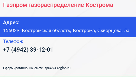 Газпром газораспределение Кострома по адресу 156029, Костромская область, Кострома, Скворцова, 5а в дальнейшем Организация, размещена в следующих категориях: