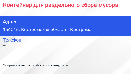 Контейнер для раздельного сбора мусора по адресу 156016, Костромская область, Кострома, в дальнейшем Организация, размещена в следующих категориях: