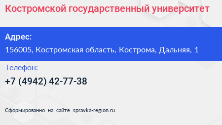 Костромской государственный университет по адресу 156005, Костромская область, Кострома, Дальняя, 1 в дальнейшем Организация, размещена в следующих категориях:
