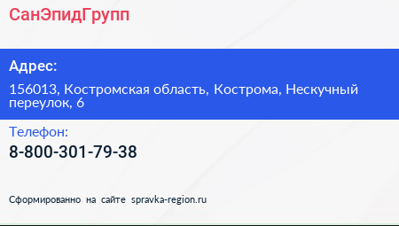 СанЭпидГрупп по адресу 156013, Костромская область, Кострома, Нескучный переулок, 6 в дальнейшем Организация, размещена в следующих категориях: