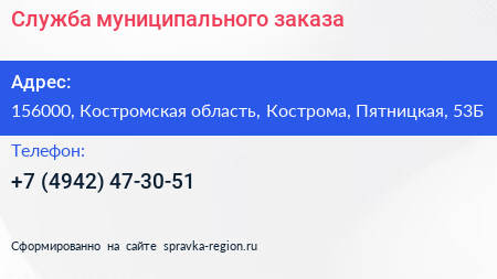 Служба муниципального заказа по адресу 156000, Костромская область, Кострома, Пятницкая, 53Б в дальнейшем Организация, размещена в следующих категориях: