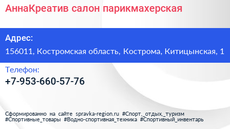 АннаКреатив, салон-парикмахерская по адресу 156011, Костромская область, Кострома, Китицынская, 1 в дальнейшем Организация, размещена в следующих категориях: