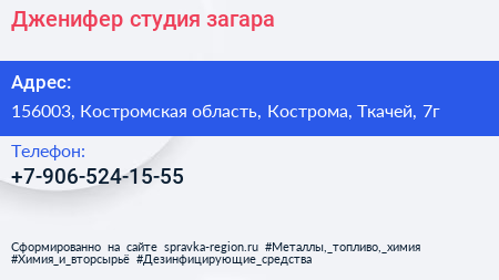 Дженифер, студия загара по адресу 156003, Костромская область, Кострома, Ткачей, 7г в дальнейшем Организация, размещена в следующих категориях: