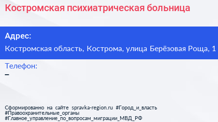 Костромская психиатрическая больница по адресу Костромская область, Кострома, улица Берёзовая Роща, 1 в дальнейшем Организация, размещена в следующих категориях: