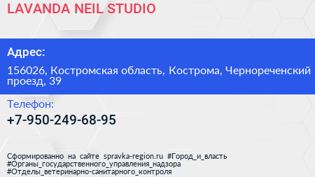 LAVANDA NEIL STUDIO по адресу 156026, Костромская область, Кострома, Чернореченский проезд, 39 в дальнейшем Организация, размещена в следующих категориях: