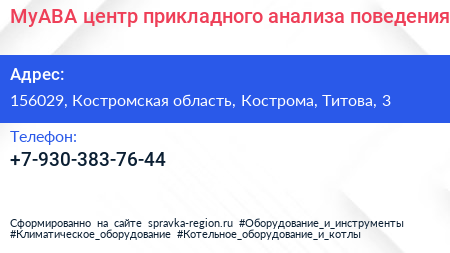 MyABA, центр прикладного анализа поведения по адресу 156029, Костромская область, Кострома, Титова, 3 в дальнейшем Организация, размещена в следующих категориях: