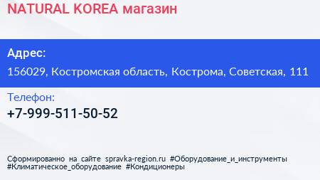 NATURAL KOREA, магазин по адресу 156029, Костромская область, Кострома, Советская, 111 в дальнейшем Организация, размещена в следующих категориях: