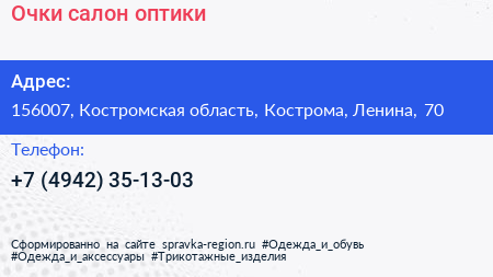 Очки, салон оптики по адресу 156007, Костромская область, Кострома, Ленина, 70 в дальнейшем Организация, размещена в следующих категориях: