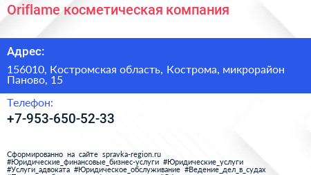 Oriflame, косметическая компания по адресу 156010, Костромская область, Кострома, микрорайон Паново, 15 в дальнейшем Организация, размещена в следующих категориях: