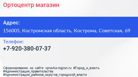 Ортоцентр, магазин по адресу 156005, Костромская область, Кострома, Советская, 69 в дальнейшем Организация, размещена в следующих категориях: