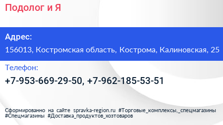 Подолог и Я по адресу 156013, Костромская область, Кострома, Калиновская, 25 в дальнейшем Организация, размещена в следующих категориях: